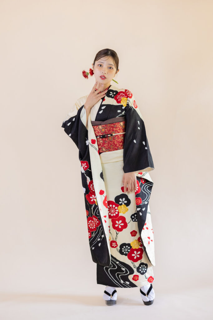 R4085814 黒白紅梅 (お着物)