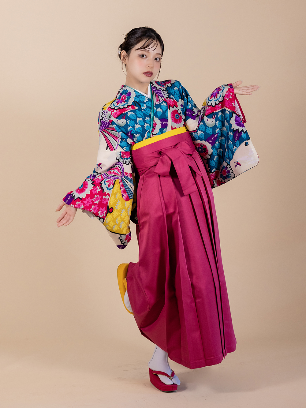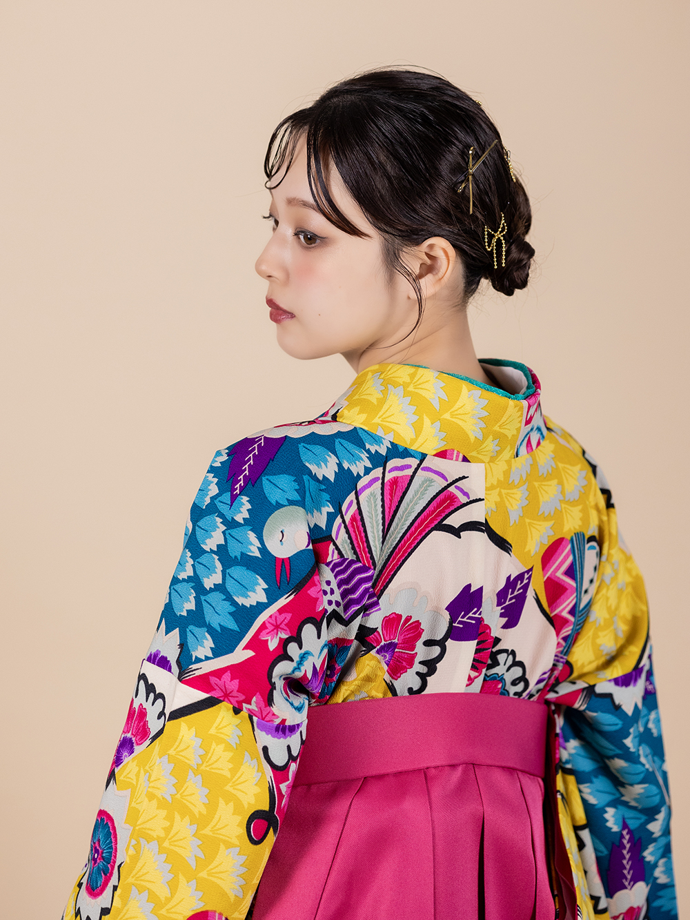 【着物】カラフルバード【袴】SPIピンク 女子着付けパックの料金です 女子着付けパックに含まれるもの 着物・はかま・長襦袢・半幅帯・重ね衿・草履・着付け用小物セット・当日の着付け・ヘアセット  *刺繍衿と帯飾りは料金に含まれません
