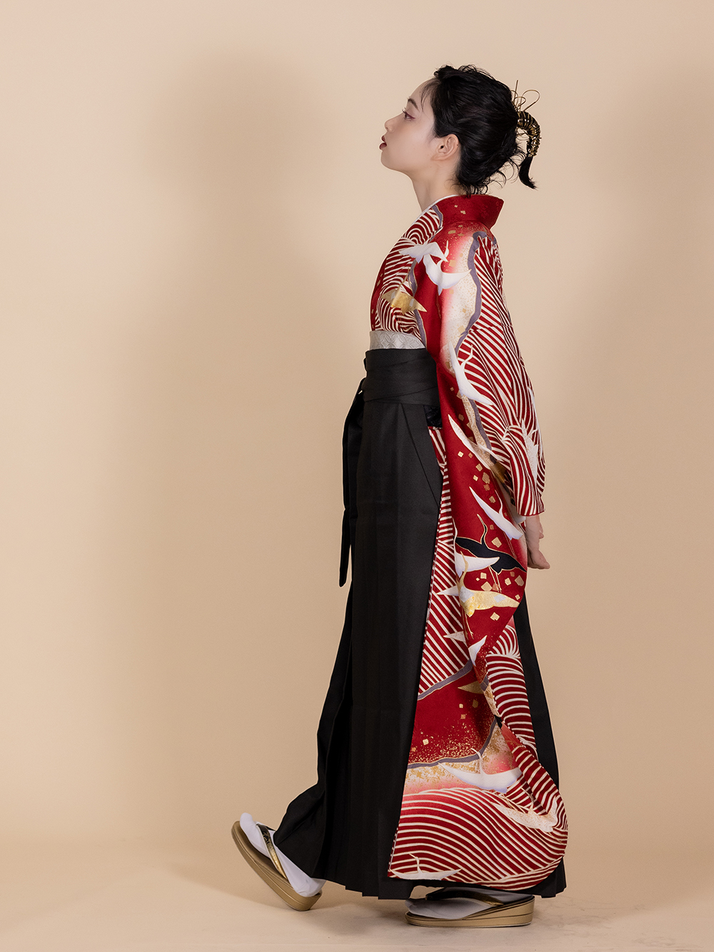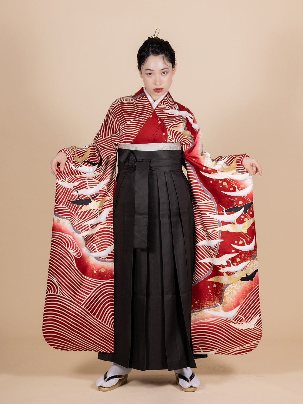 | 商品名 | 【卒業式はかま】赤地青海波鶴の舞 |