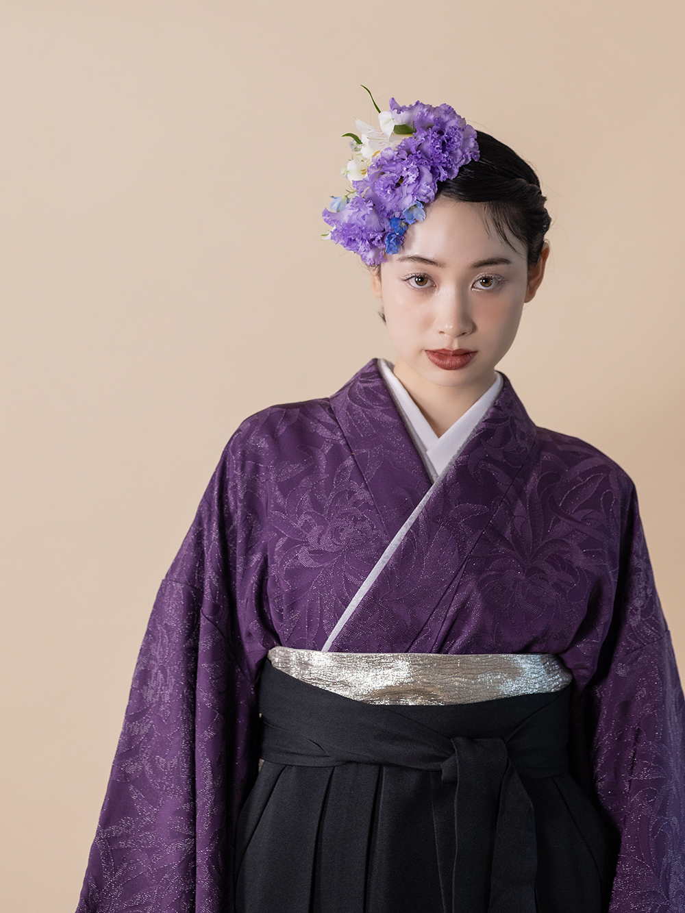 | 【着物】濃紫乱菊【袴】ブラック蝶と桜 女子着付けパックの料金です 女子着付けパックに含まれるもの 着物・はかま・長襦袢・半幅帯・重ね衿・草履・着付け用小物セット・当日の着付け・ヘアセット *刺繍衿と帯飾りは料金に含まれません | |